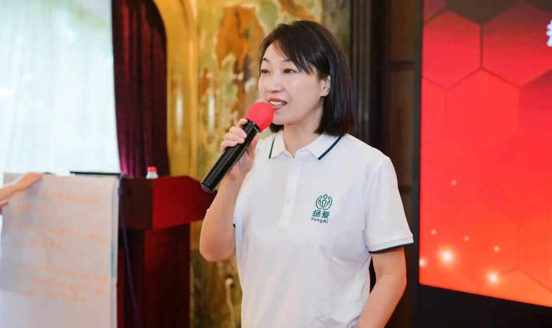 交流会开始,广州市扬爱特殊孩子家长俱乐部理事长戴榕女士致辞,在25年前,一对英国夫妇在广州种下了一个爱的种子,为特殊孩子提供咨询服务,25年后这棵种子在广州生根发芽,到现在帮助了超过1万的家庭,已经长成了一棵庇佑心智障碍特殊孩子家长的一棵小树。25年来,扬爱始终为特殊孩子家庭提供专业服务和关怀,让越来越多的家长能够走出来,帮助家长从最早的被动受益者到资助者到助人者,乃至成为家长之间彼此能够帮助的倡导者。感谢每一位捐助者的支持和关爱、感谢每一位家长的的付出和信任、感谢扬爱的监理事团队和执行团队的每一位成员的辛勤付出,才能让扬爱更加持续、专业、规范化的发展。 戴榕女士 今年的莲恩会员证书和勋章颁给了“杨芳英家庭”,作为一位孤独症孩子妈妈,杨芳英始终保持乐观态度、并将这样的态度和精神影响身边更多家庭成员。在劭扬妈妈的坚持下,劭扬越来越棒,家庭越来越幸福,他们的事迹影响和感染了更多的家庭。 杨芳英女士