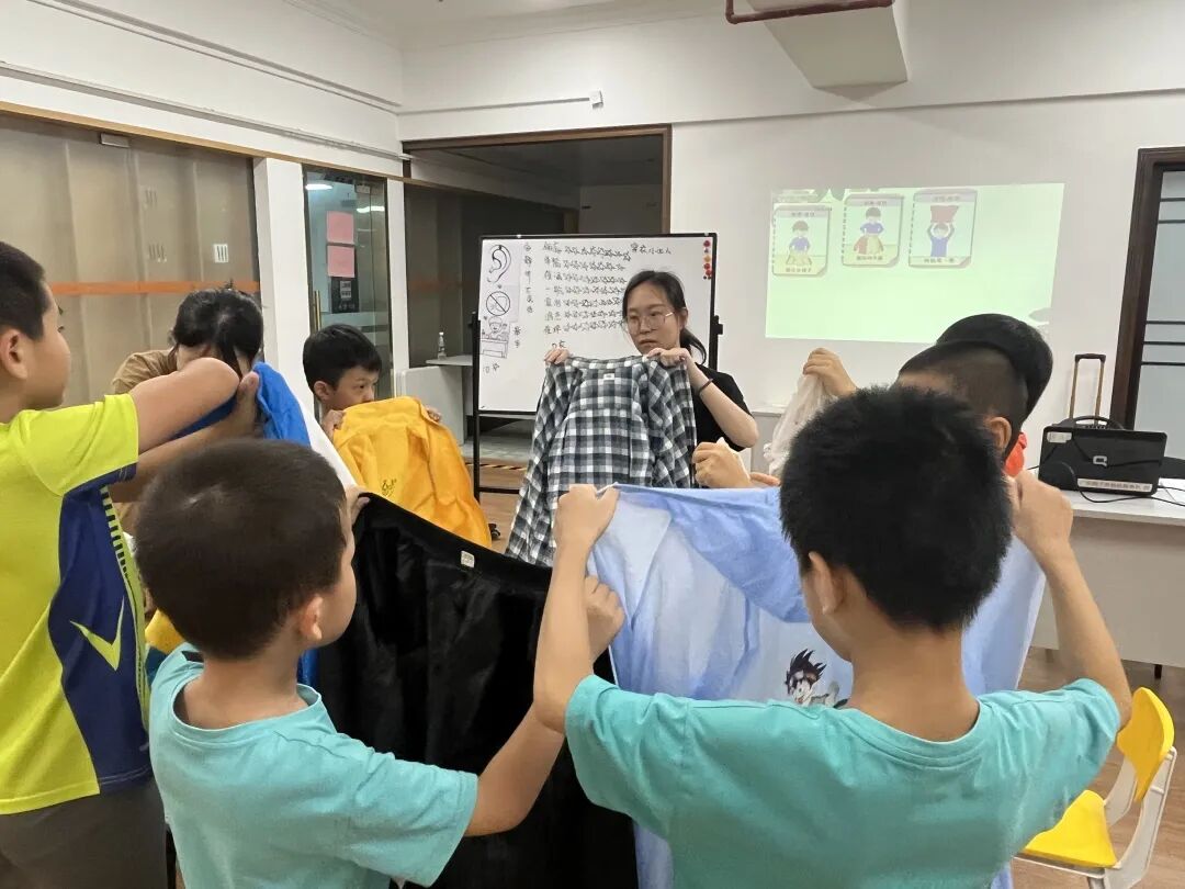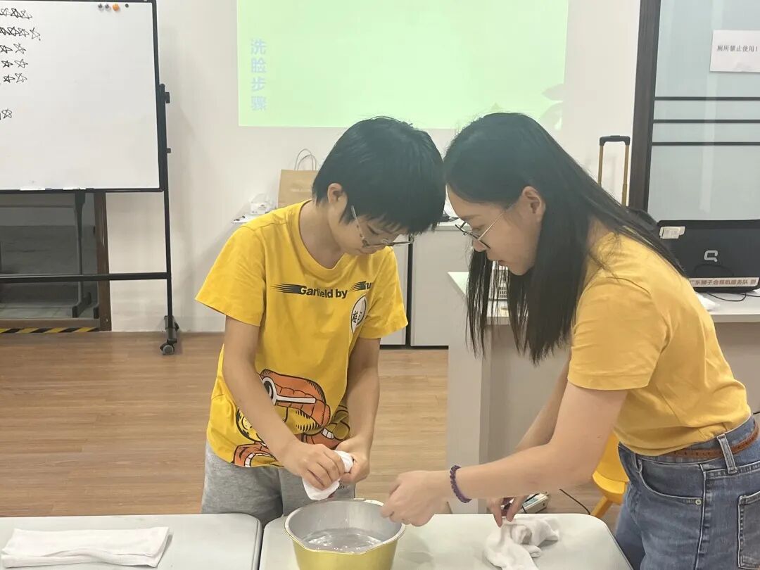 广州扬爱暑期特需儿童情绪管理班 情绪管理的重要性 不恰当的情绪出现时,若个体无法及时进行调节,不仅不利于其与他人发展正常的同伴关系,也不利于他对环境的适应,并且可能要花费很多精力去克服高强度的压力。 为此,7月10日~14日广州扬爱邀请了有着八年融合培训经验、BCBA国际应用分析师高丽丽老师给学员们开展了一连五天的情绪管理课程。 体验与感知情绪 高老师通过不同的颜色卡,辅以不同的行走速度,让学员们理解四种情绪量表,蓝色是比较慢的情绪,绿色是不快也不慢的情绪,黄色是比较快的情绪,红色是非常快的情绪。 认识基础情绪 学员们一起共读阅读绘本故事,认识基本的情绪,并对情绪进行命名,推测产生该情绪的原因。 识别与判断情绪 通过观看视频,让学员们认真观察影片中主人公的情绪,一起探讨为什么会出现这样的情绪,判断主人公的情绪所对应的颜色。 The third 适应行为与环境 通过视频故事与老师的引导,学员们逐步认识到了在面对不同场景时,怎样的情绪与行为才是最恰当的。 错误观念与情绪 通过影片中的几个案例,老师带着学员们一起辨别错误信念,并分析错误信念产生的原因,让学员们讨论怎样才是正确的做法。 经过五天的课程,学员们展现出了明显的进步。从不积极参与课堂转变为能够主动举手回答问题;从因为分数低而崩溃大哭转变为学会在生气时独自平复情绪,待恢复冷静后再重新投入课堂活动……这些变化,均明显展示了他们的成长和自我调节能力的提升。 广州扬爱暑期特需儿童乐高班 本期主题 Theme 刷牙、洗脸、穿衣,这些都是日常生活中每天都要经历的事情。而生活自理能力对于孩子们来说是生活中必不可少的一项技能,缺少这一能力会给生活带来诸多不便。对于特需儿童来说,由于多方面的因素,会导致其自理能力稍弱于同龄儿童。 为锻炼特需儿童的注意力和动手能力,帮助他们提高生活质量,广州扬爱于7月10日~14日开展了为期五天以乐高积木为媒介的"生活自理"主题活动。 借助视频和牙齿模具,让学员们初步认识爱护牙齿的重要性;再者,引导学员们使用乐高积木搭建刷牙用具,教会他们辨别此类物品和了解相应的功能。 老师与学员们一起探讨毛巾的用途,他们在老师的指导下进行拧毛巾的练习;通过乐高积木搭建一个晾毛巾的架子,让学员们将自己洗脸的毛巾挂在架子上。 在接下来的课程中,老师通过教导与小测试,学员们学会将不同季节的衣服进行分类,并通过观察图片以及老师的示范,一步一步让学员们明白如何穿脱衣服;通过图画故事创设情境,让学员们学习扣纽扣的方法,借助乐高积木搭建一个简易衣柜,将他们自己的衣服放进衣柜里。 经过五天的学习,学员们通过老师的演示、参与各种小游戏,在游戏中进行练习,逐步掌握了刷牙、拧毛巾、洗脸、穿脱衣物、扣纽扣等自理技能。在此过程中,孩子们除了提高生活自理能力外,还知道了刷牙的重要性、保护牙齿的方法、根据天气变化选择合适的衣物等生活常识,学会将更多的注意力放到同伴身上、在拼搭中锻炼手眼协调能力、专注力、并体验“合作”带来的乐趣。 乐高生活自理课有趣、生动,能让小朋友们在玩乐中学到生活技能。 孩子现在已经有渐渐地尝试去控制自己的情绪,主动说出自己的诉求。 特别鸣谢