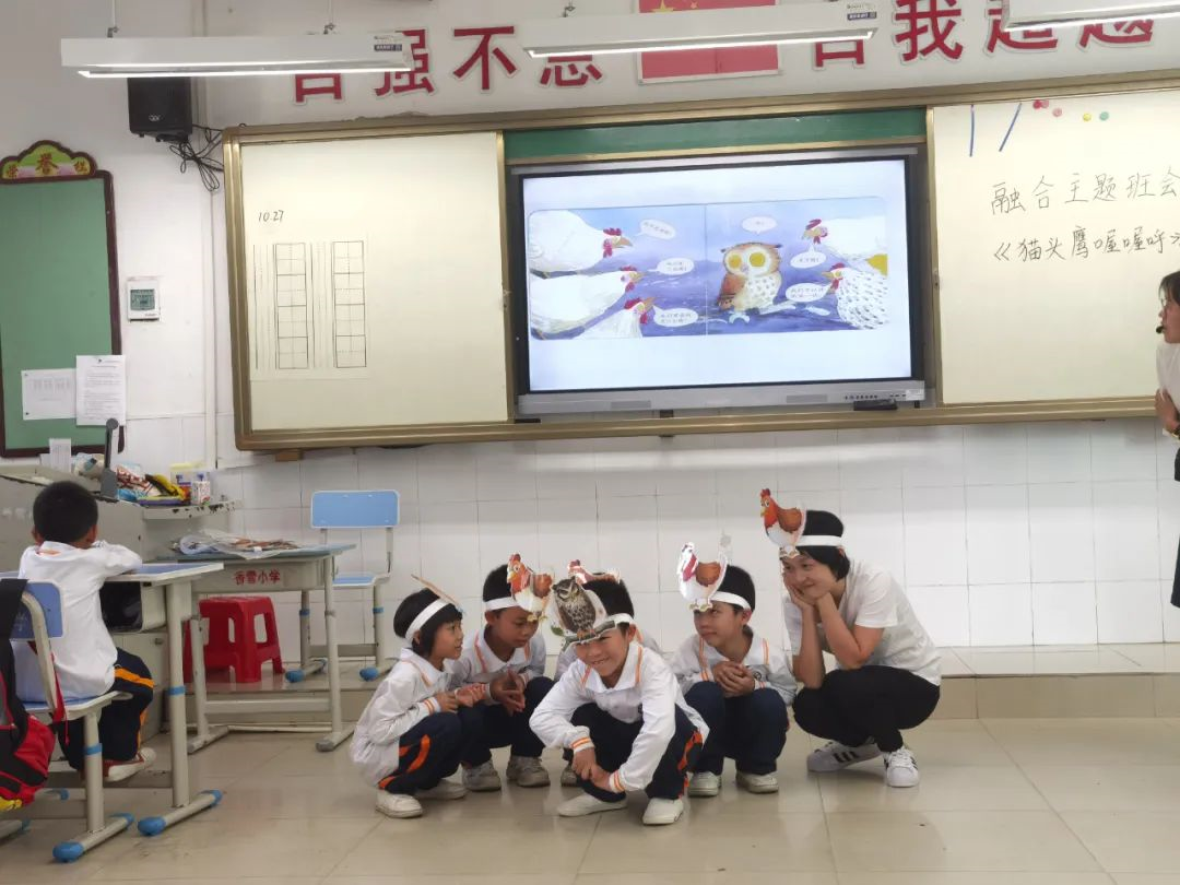 2020年10月27日下午,扬爱融合倡导小组的老师们分别在香雪小学的一年1班和一年4班开展了《猫头鹰喔喔呼》的融合绘本课。绘本故事当中的主角猫头鹰希望通过百般努力想要被母鸡们接纳,但仅仅因为鸣叫的“口音”而被歧视、排挤,结果在母鸡们因为碰到老鼠而惊慌失措的时候挺身而出,帮助母鸡们赶走了老鼠,英勇无比的表现受到了母鸡们的赞赏和表扬;以这篇绘本故事为主题,目的在于通过有趣的绘本故事让学生们明白每个人都有自己的优点和缺点,每个人都有自己的短处和长处,我们要善于去发现和看到别人的长处,就像猫头鹰一样,虽然它不会像鸡一样鸣叫,但是却能捕捉老鼠。